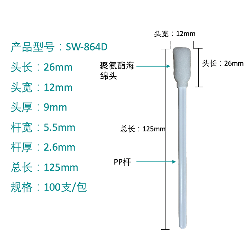 vysoce přesné bezprašné vatové tampony pro polovodičové použití